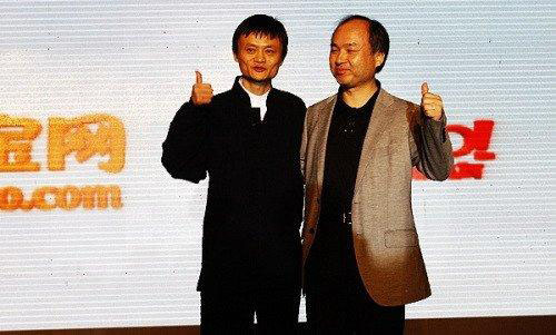 阿里巴巴董事局主席马云(左)与软银集团董事长兼总裁孙正义(右)合影(腾讯科技配图)
